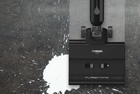 Philipiak Purofare to niezwykle lekkie, zwinne i nowoczesne urządzenie czyszczące z wilgotną polimerową rolką myjącą, które skutecznie usuwa suche i mokre zanieczyszczenia z twardych powierzchni.